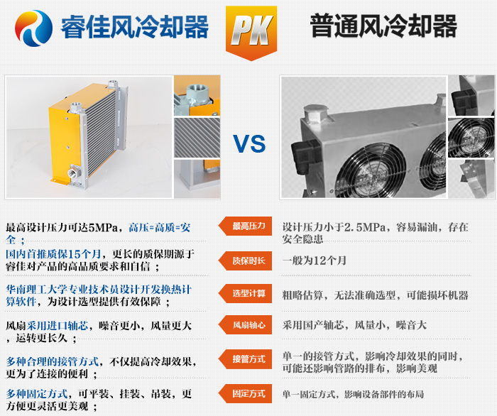 答:就目前的情況而言,風(fēng)冷卻器行業(yè)一般的質(zhì)保期為12個月。佛山睿佳冷卻器廠家的標準產(chǎn)品首推15個月超長質(zhì)保期,敢于延長質(zhì)保期,源于對質(zhì)量更高的要求。